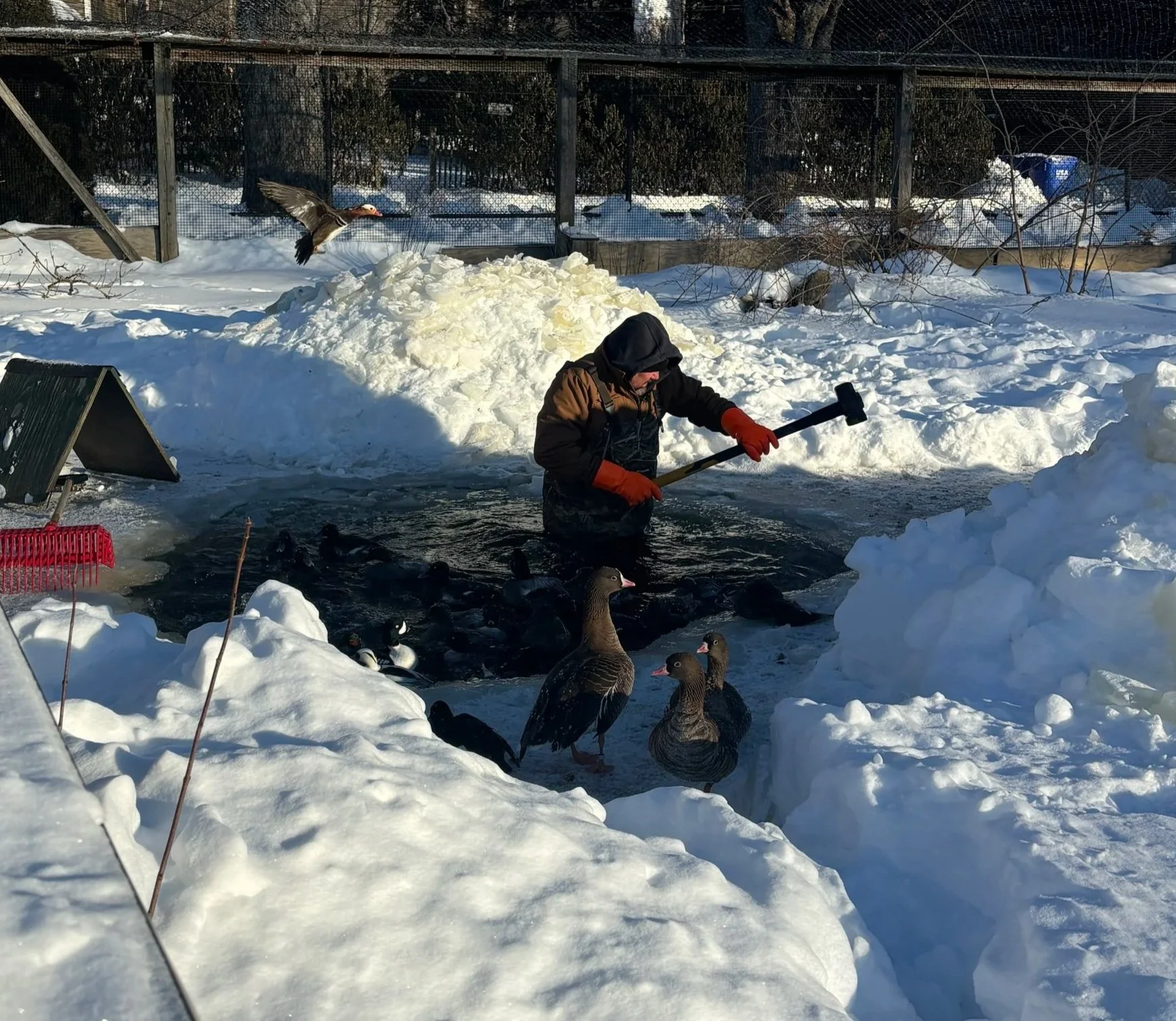 Your support this winter will directly benefit our flock by helping us upgrade our current water circulation system. This upgrade is much needed and will support our flock year-round by aerating the water and improving overall water quality, making for happier, healthier birds all year long!